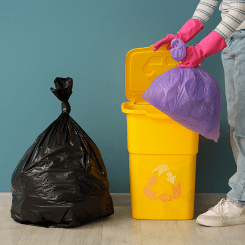 Residents should securely tie their leak-proof garbage bags when they are full. To ensure safety, sharp items must be double-bagged.